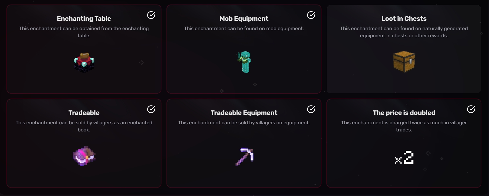 可交易装备: 村民售卖的装备可能带有该附魔。